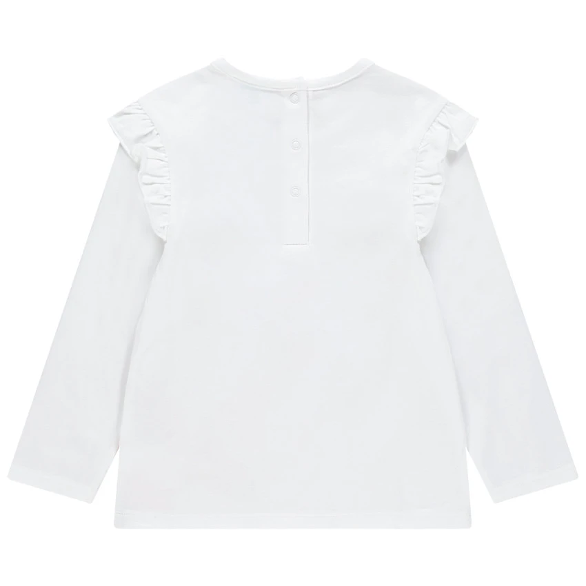 T-shirt manches longues en coton bio. Encolure ronde en bord-côte. Emmanchures volantées. Minnie brodée sur le devant. Ouverture pressionnée au dos.