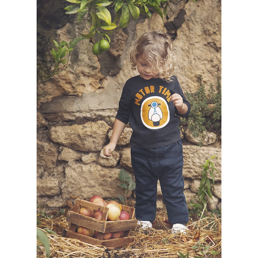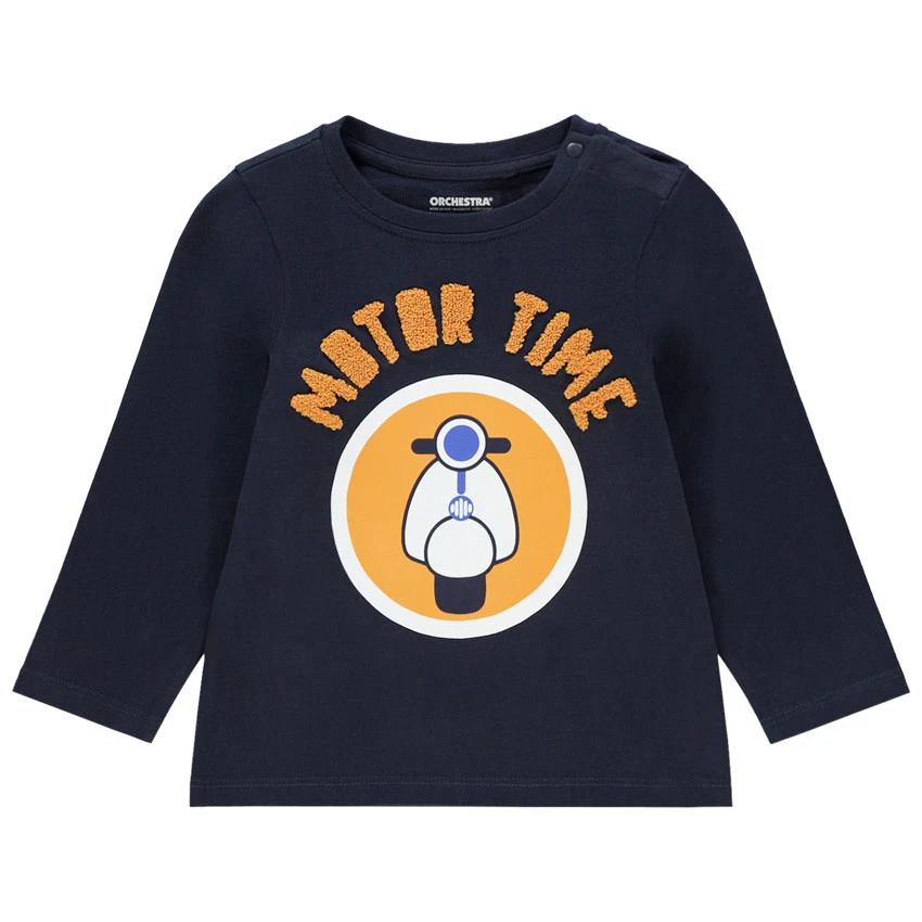 T-shirt manches longues en coton. Encolure ronde pressionnée. Scooter printé avec textes en bouclette. Dos uni.