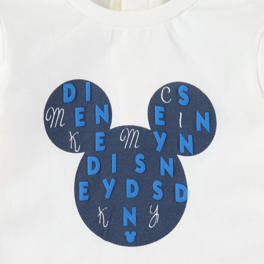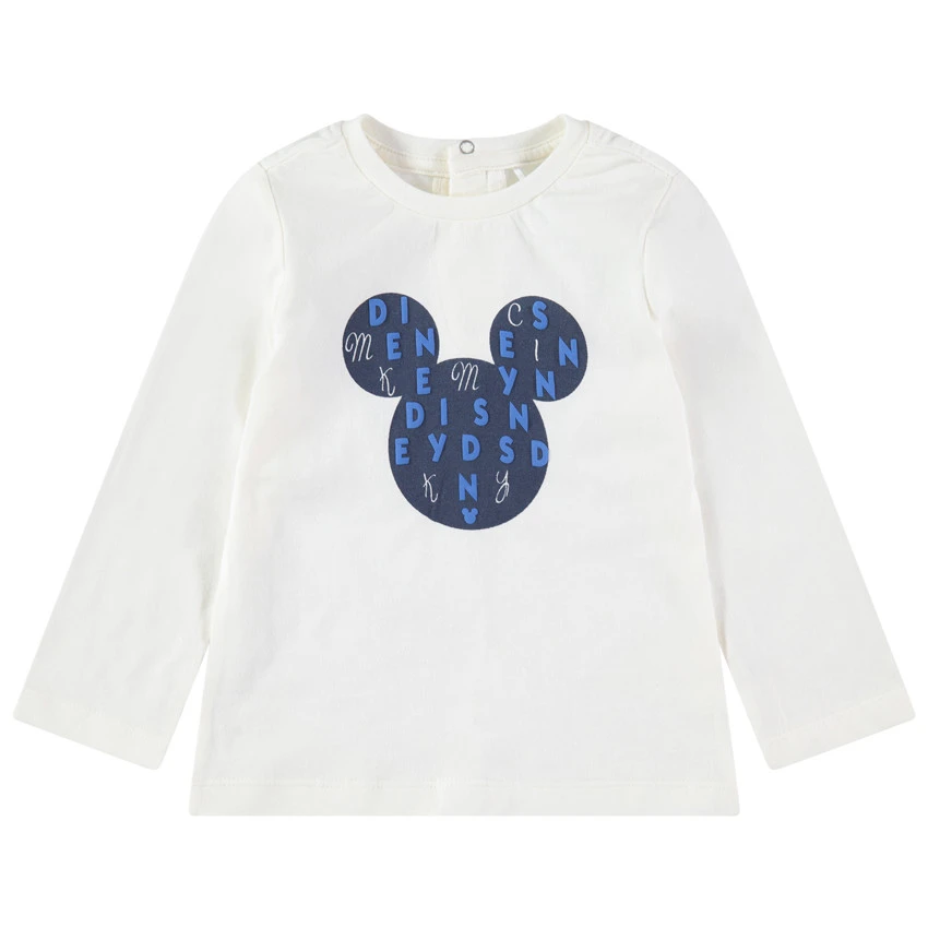 T-shirt manches longues en jersey uni. Encolure ronde en bord-côte. Ouverture pressionnée au dos. Serti Mickey printé devant.