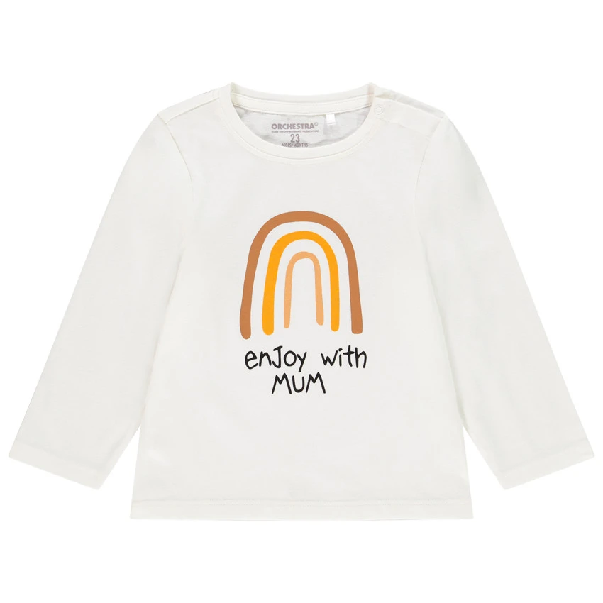 T-shirt manches longues uni en coton. Col rond en maille extensible à ouverture pressionnée sur le côté. Arc-en-ciel printé sur le devant. Dos uni.