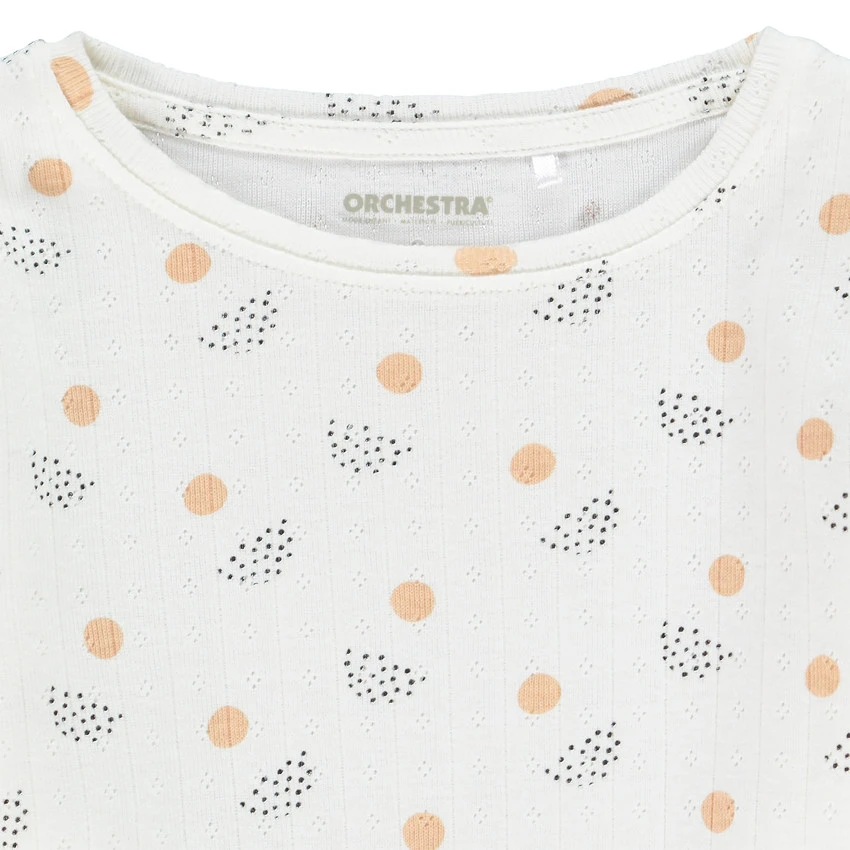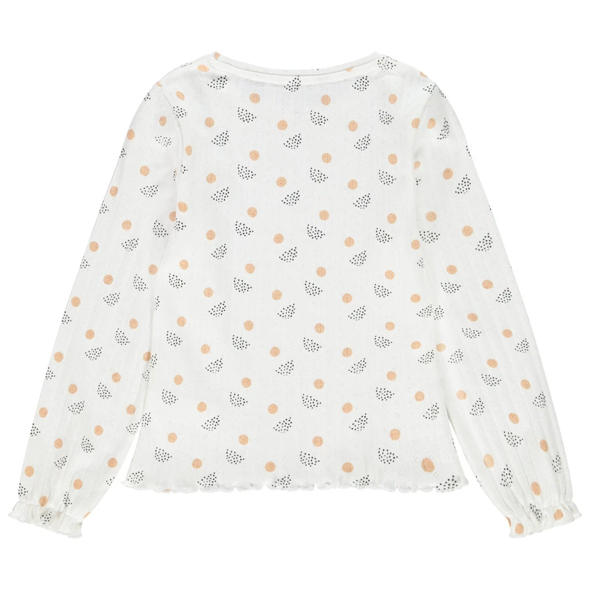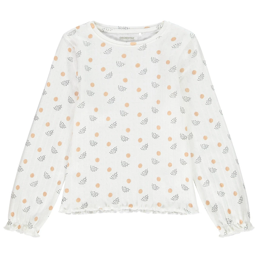 T-shirt manches longues en maille fantaisie. Imprimé graphique all-over. Col rond en maille extensible. Bout des manches ondulé.