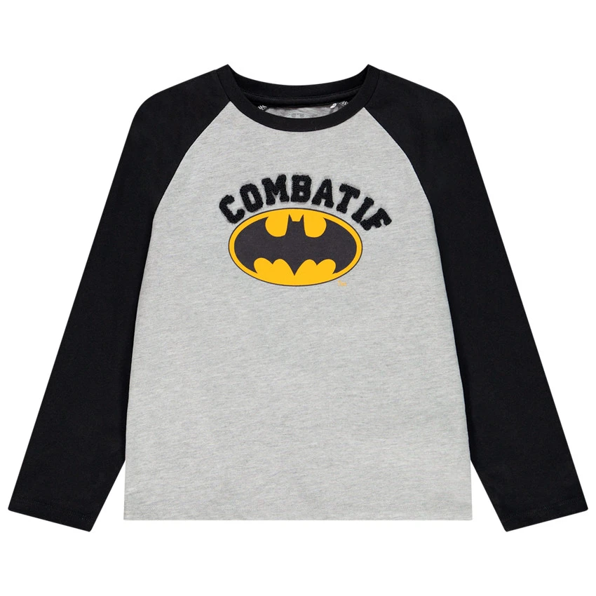 T-shirt manches longues unies pour enfant garçon. Col rond en maille extensible. Logo Batman avec inscription en bouclette. Manches raglan pour l’enfiler rapidement et avoir plus de liberté de mouvement.