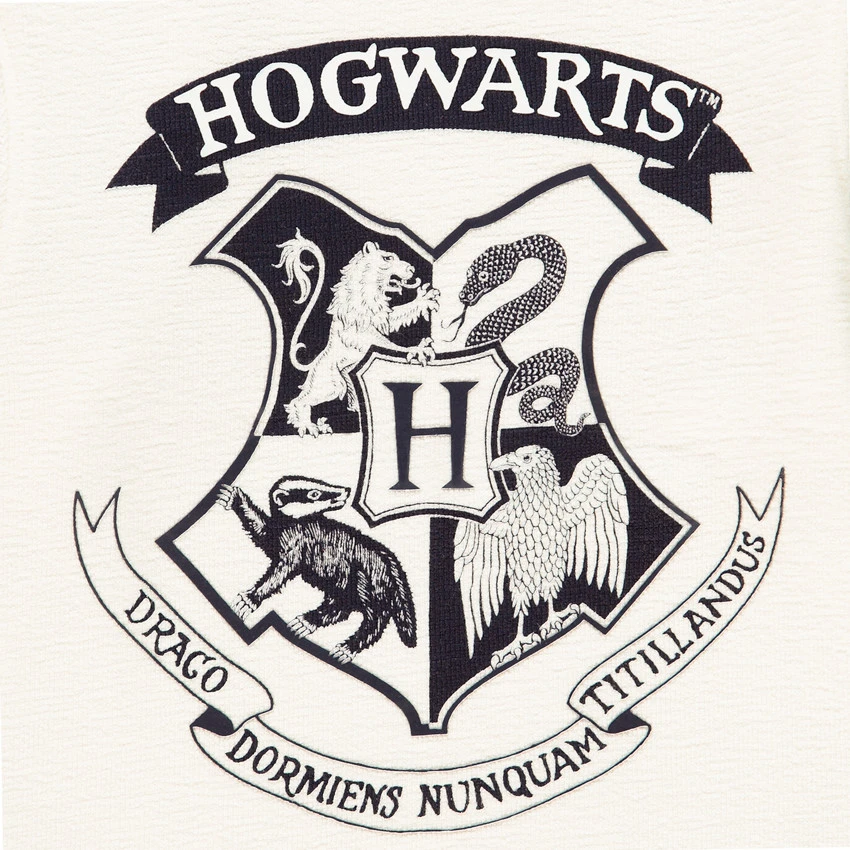 T-shirt manches longues en coton pour enfant garçon. Col rond en maille extensible. Logo Hogwarts sur le devant. Bandes contrastées sur les manches. Dos uni.