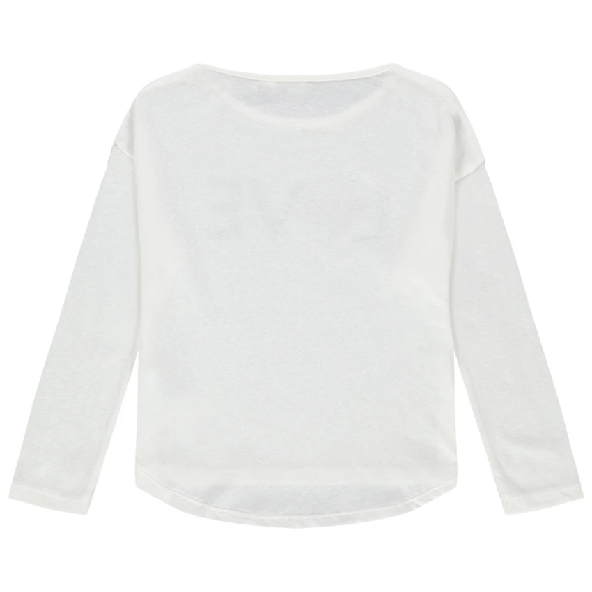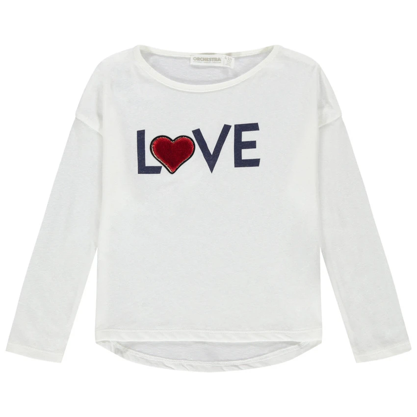 T-shirt manches longues uni. Encolure ronde en bord-côte. Message printé sur le devant avec coeur en velours. Dos uni.