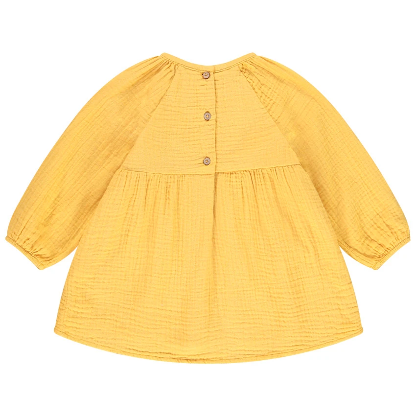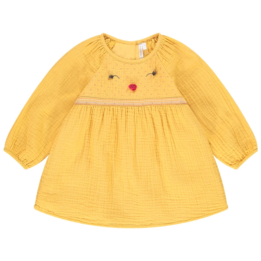 Tunique manches longues en gaze de coton. Col rond. Détails brodés et reliéfés sur la poitrine. Bande colorée. Manches raglan pour une bonne liberté de mouvements. Ouverture boutonnée au dos pour l’enfiler facilement. Doublure intégrée pour une bonne opacité.