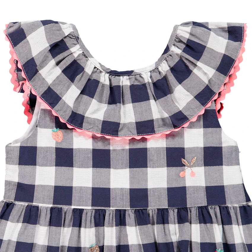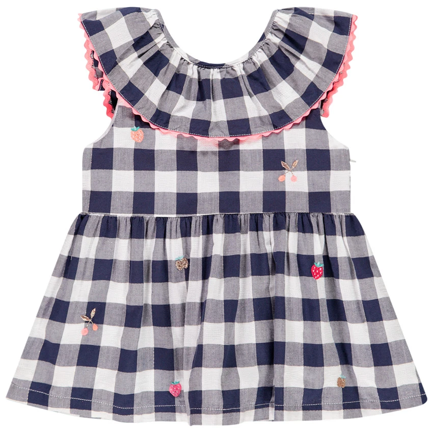 Tunique manches courtes. Encolure ronde volantée. Fruits brodés. Bas de la tunique ample.
