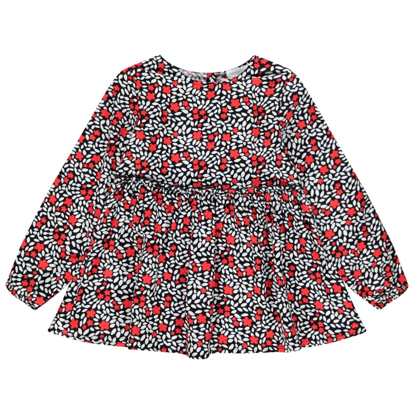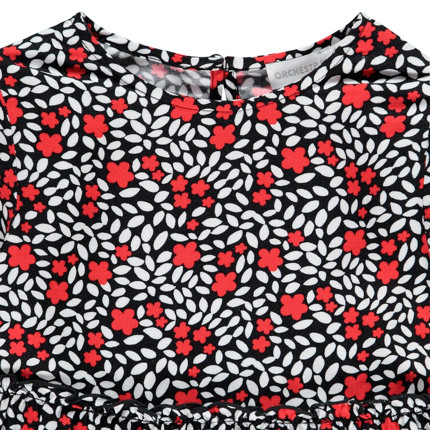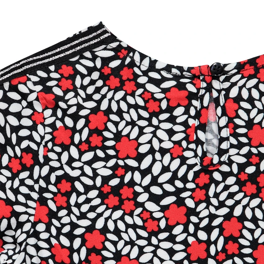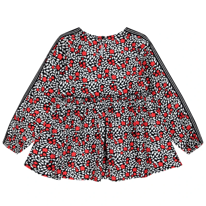Tunique manches longues pour enfant fille. Imprimé floral contrasté. Col rond. Taille élastiquée pour une bonne tenue. Ouverture goutte au dos pour l’enfiler facilement. Bandes appliquées à rayures brillantes sur les côtés.