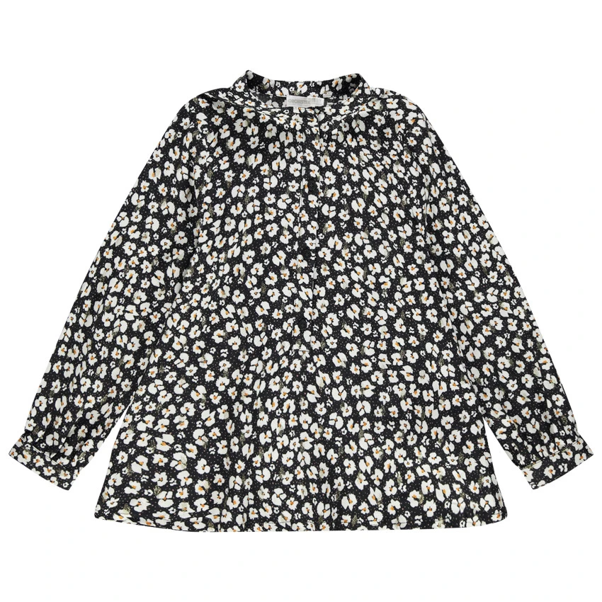 Tunique manches longues imprimée all-over. Tissu imprimé et dessiné en France. Ouverture boutonnée sur le devant. Poignets boutonnés.