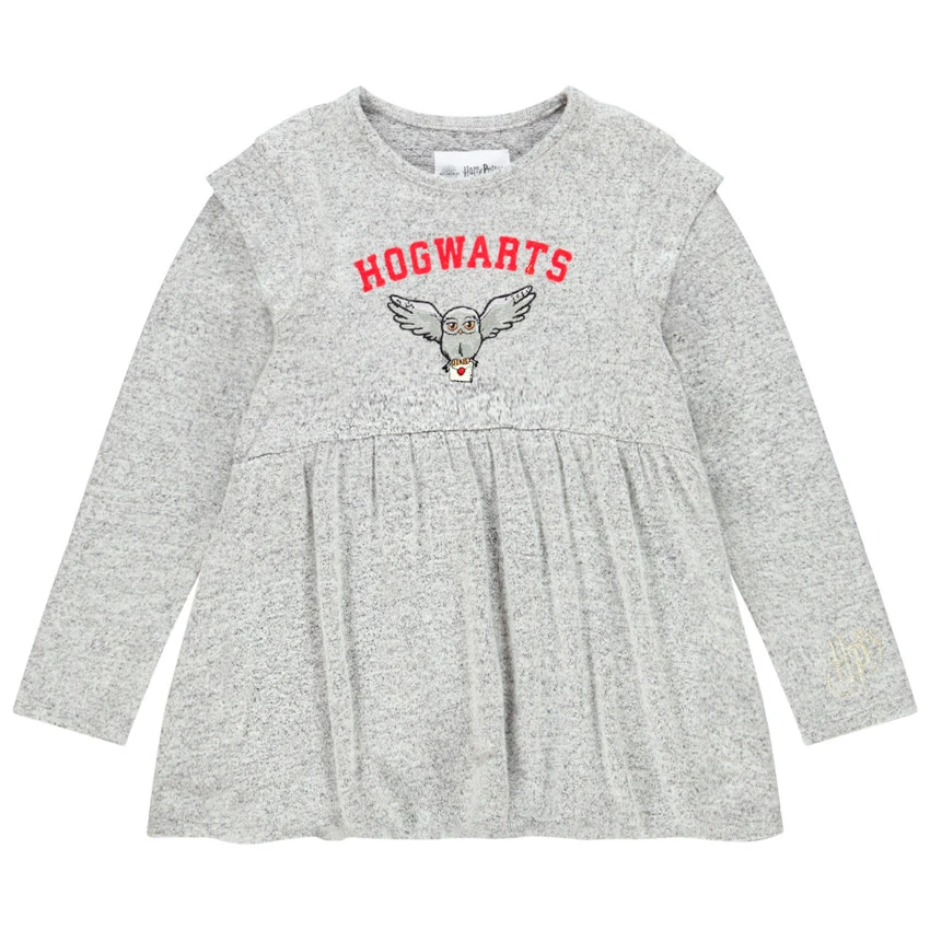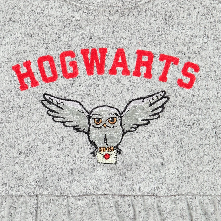 Tunique en maille chinée. Col rond en maille extensible. Inscription Hgwarts et Hedwige brodée devant. Effet de superposition sur les emmanchures.