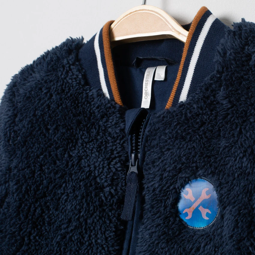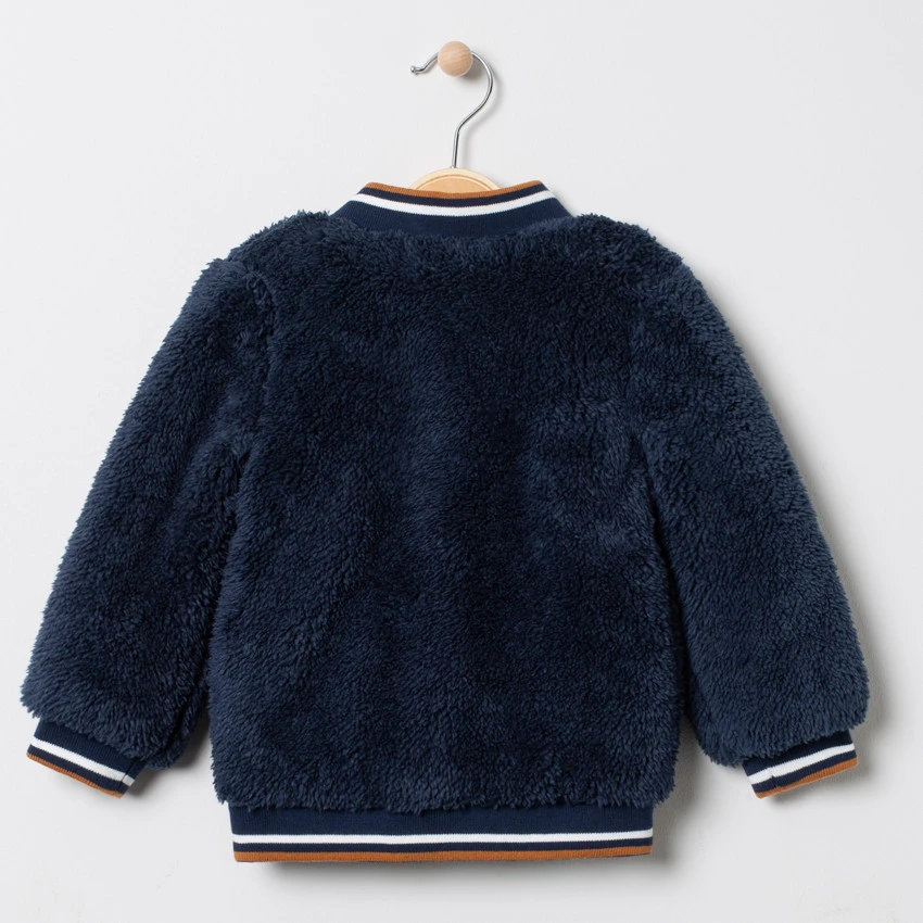 Veste en sherpa. Col teddy rayé. Ouverture zippée devant. Badge patché sur la poitrine. Poignets et base en bord-côte. Doublure en jersey.